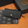 Odos Guru Lietuviška rankų darbo odinė delninė piniginė su prisegamu dirželiu riešuiSpalva: JuodaIšmatavimai: 20 x 11 cm18 odinių skyrių kortelėms2 skyriai užsegami užtrauktukuViduje 3 skyriai popierinėms kupiūroms, dokumentams, telefonuiNatūrali vaškuota Crazy horse oda, nešiojant įgauna individualu atspalvį, draskosi, tamsėja
