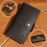 Atnaujinta Moderni Lietuviška odinė Delninė Piniginė su 3 RFID automatiniais iššokančių kortelių dėklaisSpalva: Tamsiai ruda kaštonasIšmatavimai: 22 x 12,5 cm3 RFID automatiniai iššokančių kortelių dėklai1 Permatomas langas dokumentams, papildomas odinis skyrius kortelėmsPlatus monetų skyrius užsegamas užtrauktuku išorėjeViduje 4 skyriai popierinėms...